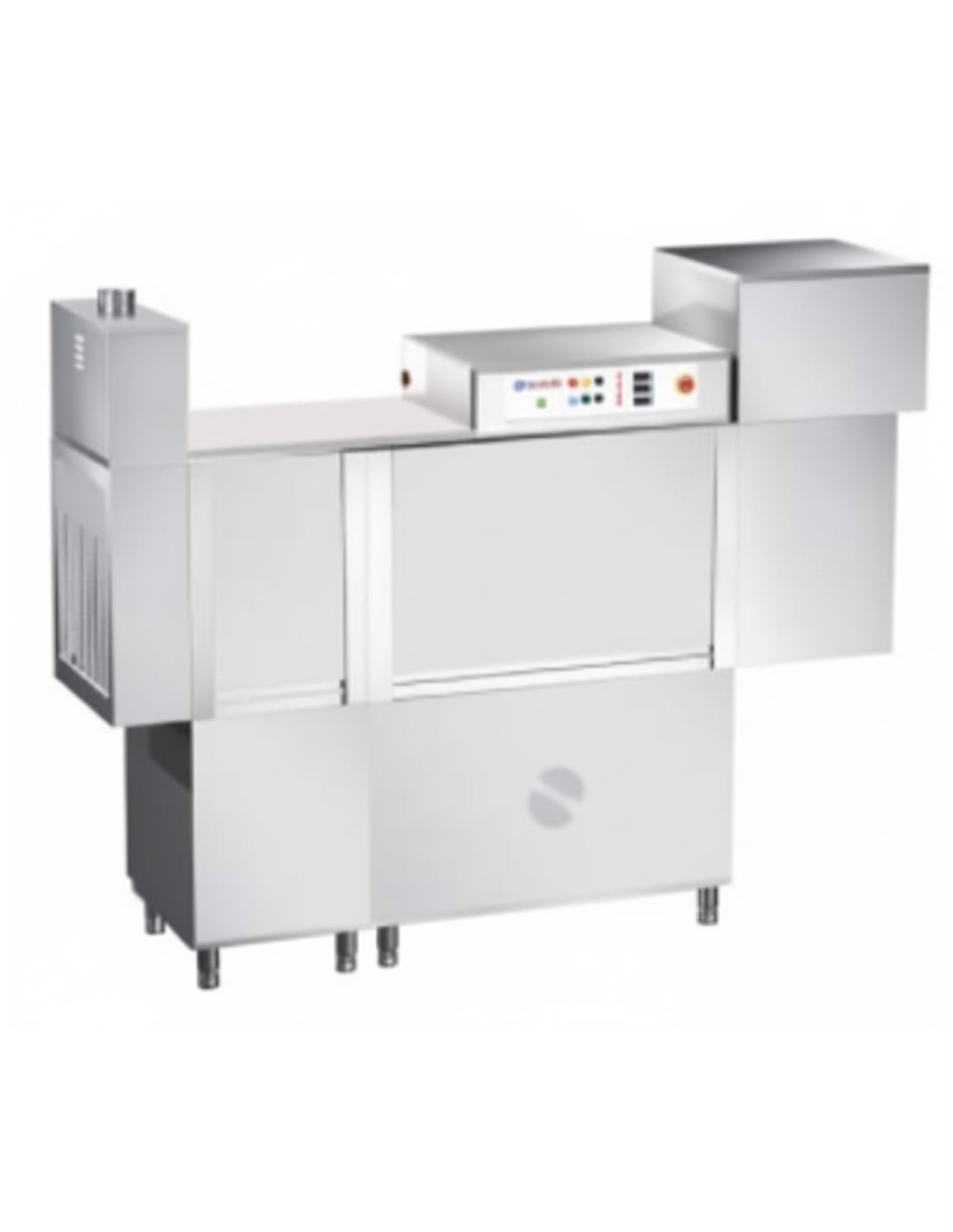 NIKROM - GranitaEl A-3600S es un lavautensilios de arrastre con sistema de secado integrado, diseñado para cocinas industriales de gran capacidad. Su estructura en acero inoxidable AISI 304 y su sistema de prelavado, lavado, aclarado y secado automático garantizan resultados higiénicos y un funcionamiento continuo, ideal para hoteles, hospitales o grandes comedores.