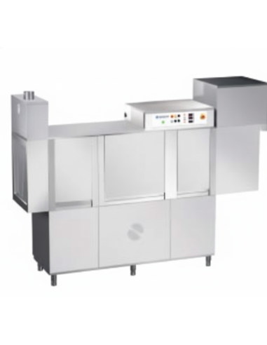 NIKROM - GranitaEl A-4500S es un lavautensilios de arrastre con sistema de secado integrado, diseñado para grandes cocinas profesionales que requieren máxima capacidad y eficiencia. Permite lavar entre 4.000 y 5.400 platos por hora, combinando rendimiento, durabilidad y resultados de secado perfectos. Su estructura en acero inoxidable AISI 304 garantiza resistencia, higiene y fácil mantenimiento.