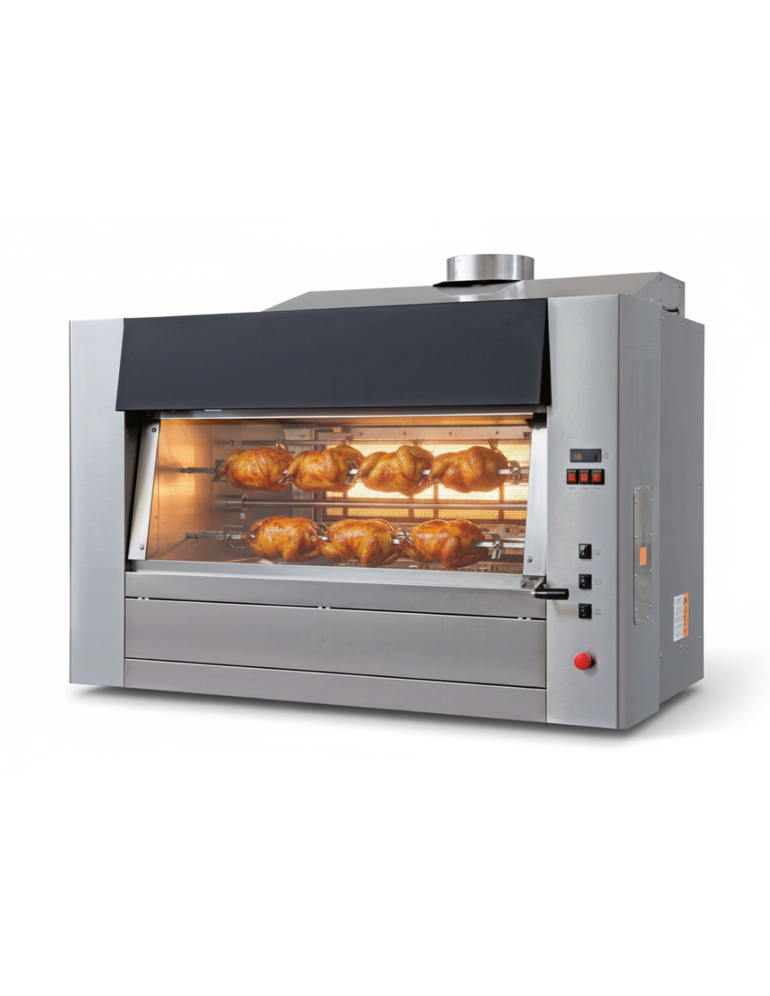 NIKROM - GranitaEl Asador a Leña 126 (126 L) es el equipo de asado a leña de mayor capacidad, diseñado para la producción masiva de pollos con el inconfundible sabor de la cocción tradicional. Con un impresionante total nominal de 126 pollos, este modelo utiliza 18 espadas para optimizar cada asada. Sus grandes dimensiones y el uso de leña lo hacen ideal para grandes asaderos o restaurantes que buscan un alto rendimiento y una marcada diferenciación de sabor.