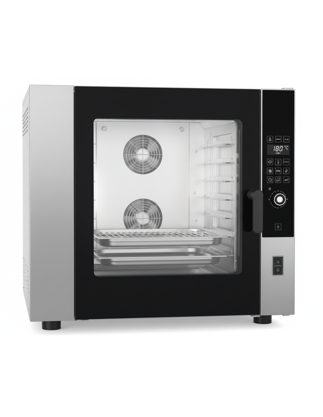 El Horno EG711V es un horno Mixto (Combi) eléctrico con capacidad para 7 bandejas de tamaño GN 1/1. Clasificado como mixto por su función de vapor directo en 5 niveles, junto con convección e inversión de ciclo. Dispone de una potencia de 10,4 KW, opera con tensión trifásica (400V 3F+N), y sus dimensiones son 73x86x85cm.