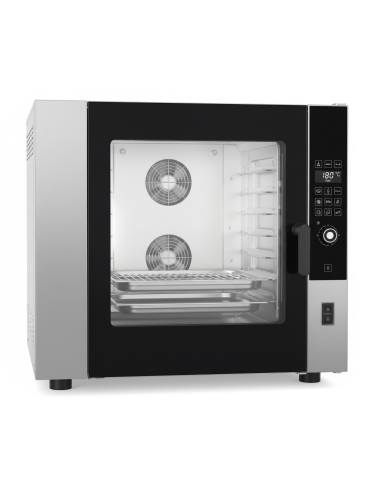 NIKROM - GranitaEl Horno EG1111V es un horno Mixto (Combi) eléctrico de gran capacidad, diseñado para 11 bandejas de tamaño GN 1/1. Se clasifica como mixto por incorporar inyección de vapor directo en 5 niveles, junto con convección e inversión de ciclo. Ofrece una potencia de 16 KW, opera con tensión trifásica (400V 3F+N), y sus dimensiones son 73x86x113 cm.