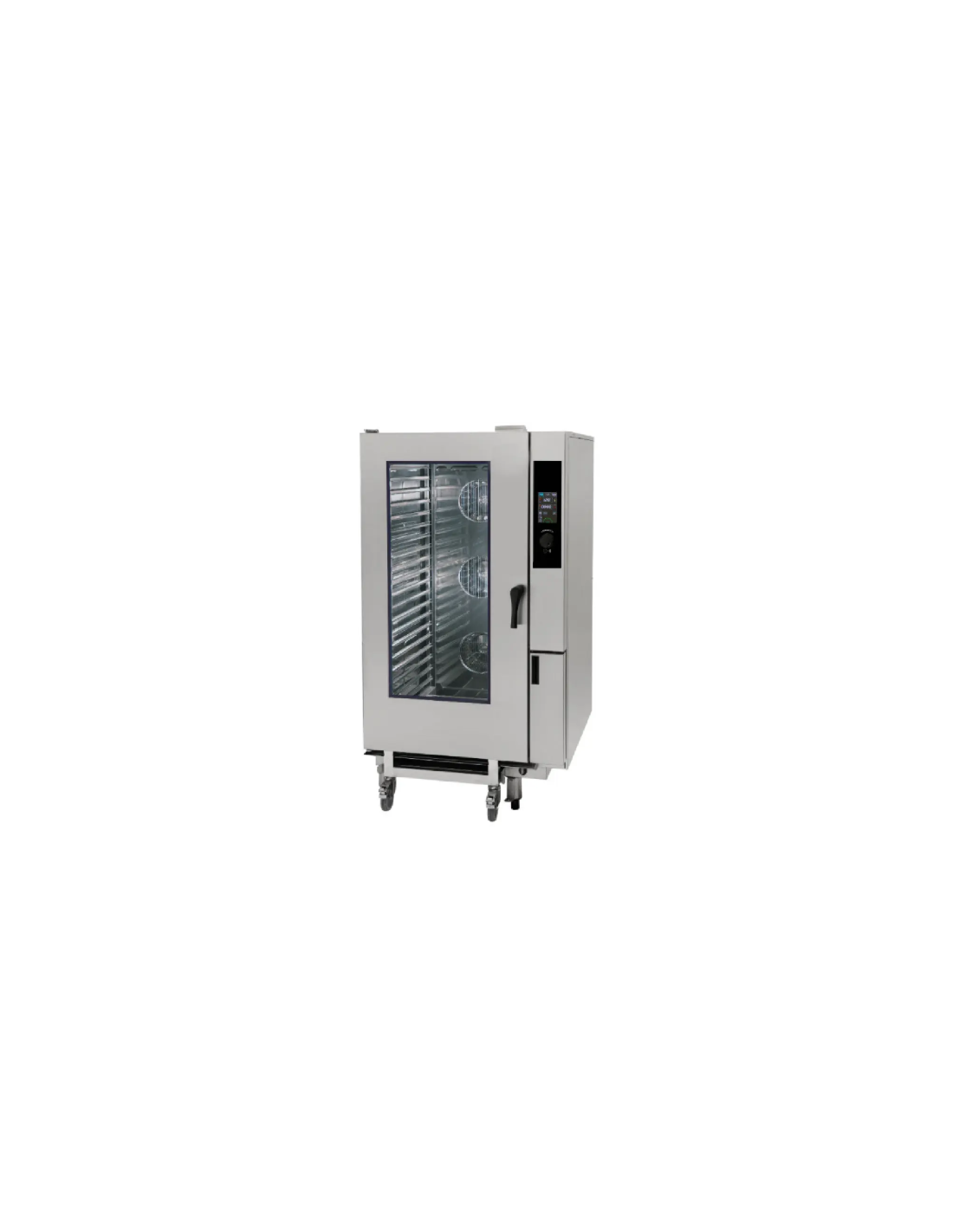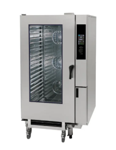 NIKROM - GranitaEl Horno GMC202G es un horno Mixto (Combi) a gas de ultra alta capacidad, con control Panel touch (táctil), diseñado para 40 bandejas de tamaño GN 1/1. Se clasifica como mixto por su sistema de vapor directo. Es un equipo digital multifunción, con una potencia térmica de 45,5\ KW y requiere tensión eléctrica monofásica (230V F+N). Incluye de serie funciones avanzadas como sonda, lavado automático, conexión USB y carro.