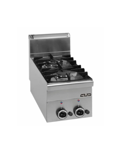 La Cocina MG2S6 es un módulo superior (TOP) a gas, diseñado para instalarse sobre una base o mesa, que cuenta con 2 fuegos. Ofrece una potencia total de 5,8 KW. Está diseñada con encimera estampada, hermética y antidesbordamiento, y utiliza parrillas de 29x51.