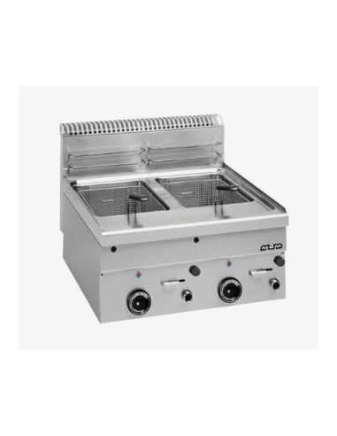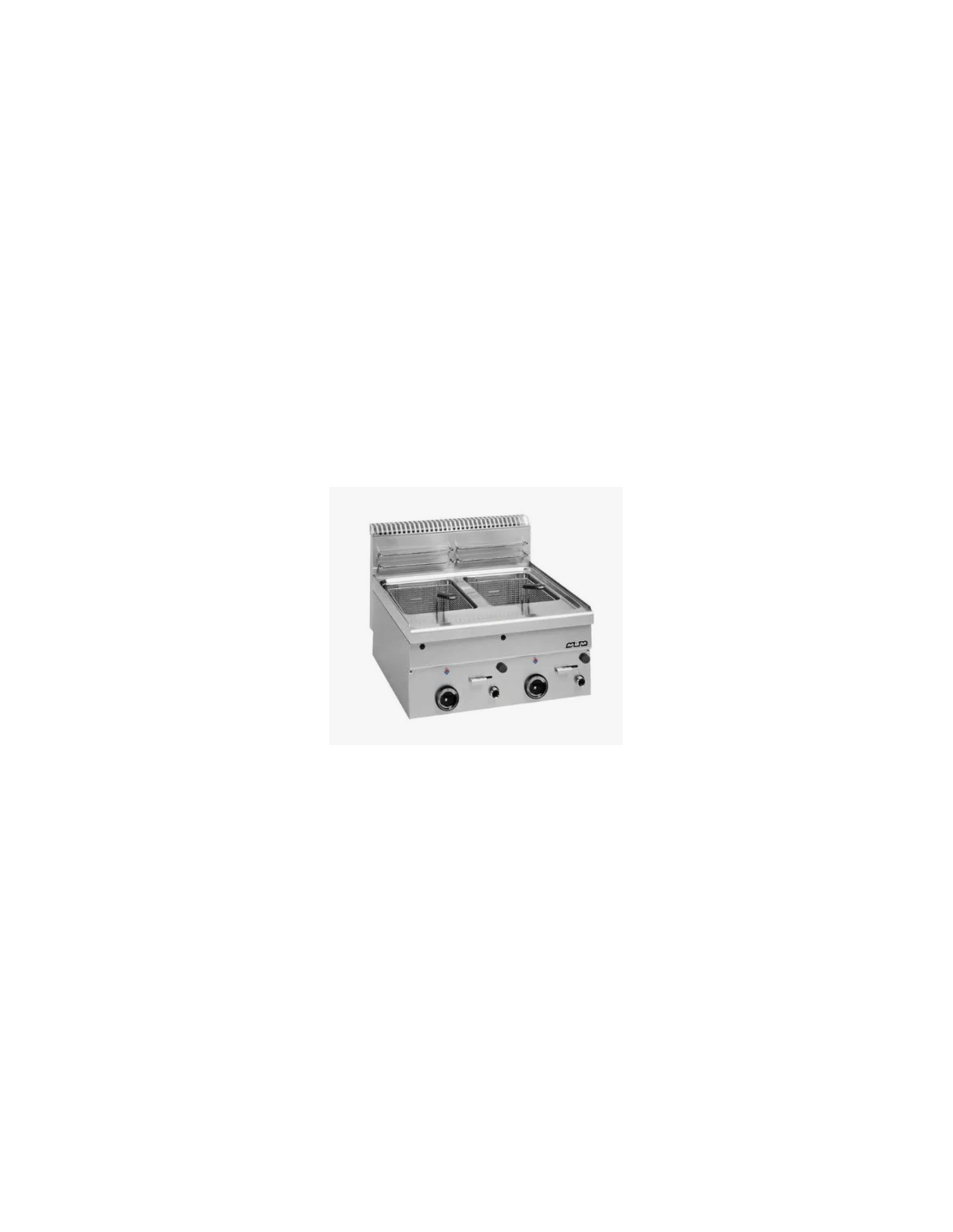 La Freidora MGF66 es una freidora a gas de módulo superior (TOP) con doble cuba y una capacidad total de 16 litros (8+8). Está diseñada con quemadores sumergidos en la cuba de hierro fundido con alto rendimiento y cuenta con termostato de seguridad. Ofrece una potencia de 14,8 KW (7,4x2) y requiere tensión monofásica (230V F+N).