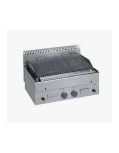 El Grill MGPL86 es un módulo superior (TOP) a gas de gran tamaño que utiliza piedra lávica para la cocción. Su superficie de parrilla es grande (80 cm de ancho) y ofrece una potencia de 14 KW. Cuenta con dos zonas de calentamiento independientes y es regulable mediante palancas frontales.