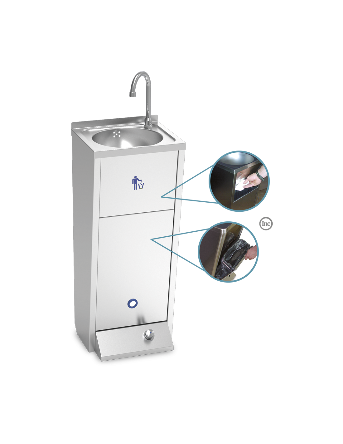 Fijado tras la puerta, dispone de un soporte porta-bolsas de basura diseñado para ser usado como papelera. El acceso se realiza mediante una trampilla abatible en el frontal.