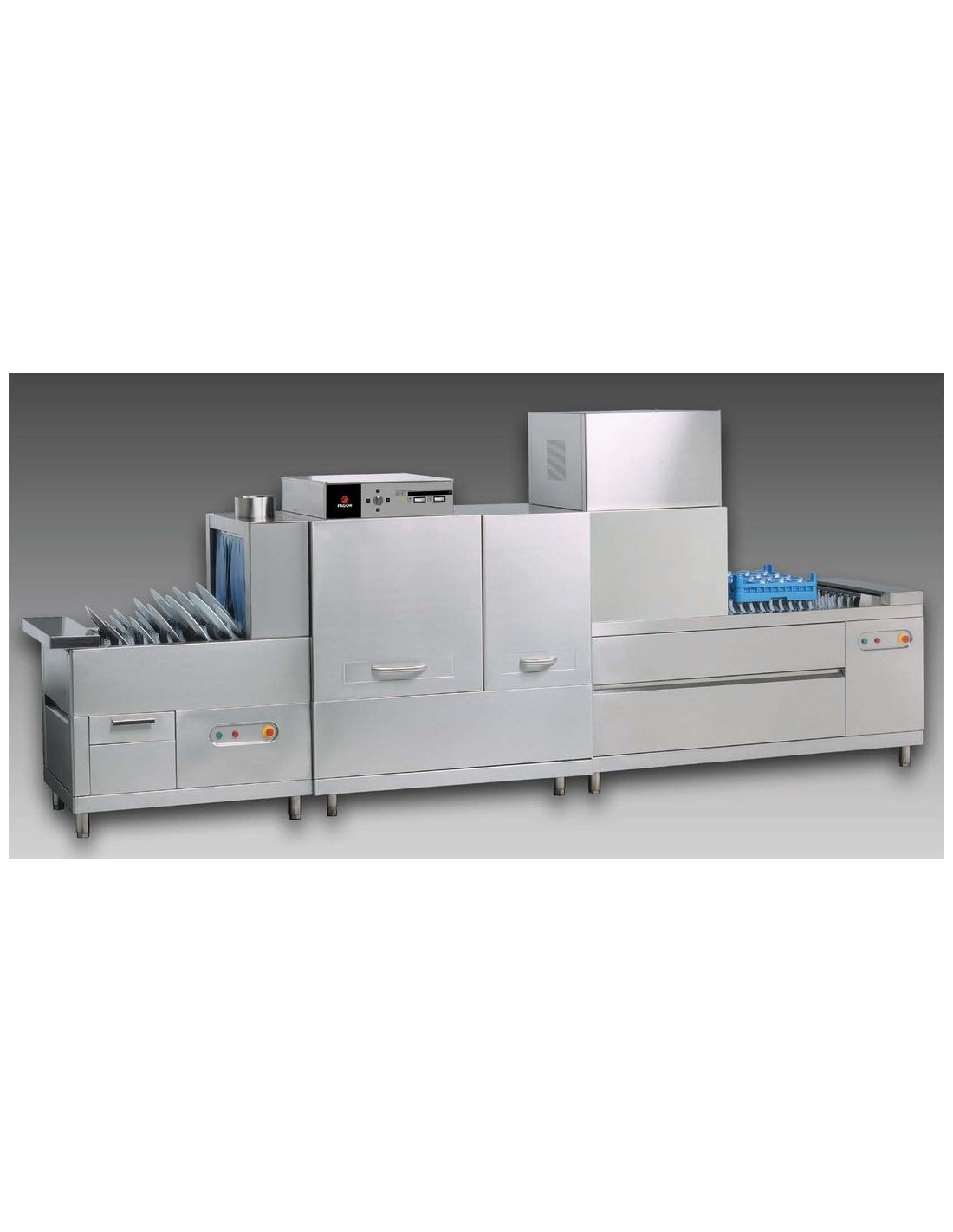 -Zonas de carga (1,2 m) y descarga (2 m) de 900 mm de altura, con cinta estándar de 600 mm de ancho para vajilla y bandejas.