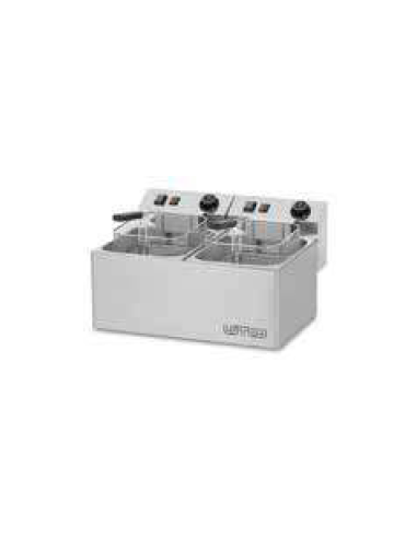 El modelo MEFT66L es un fry top eléctrico de mayor tamaño (60 cm) con plancha lisa de acero satinado de 12 mm de espesor. Cuenta con control termostático, zonas de calentamiento independientes y un amplio cajón recogegrasas.