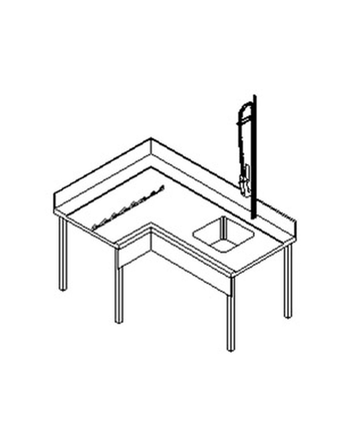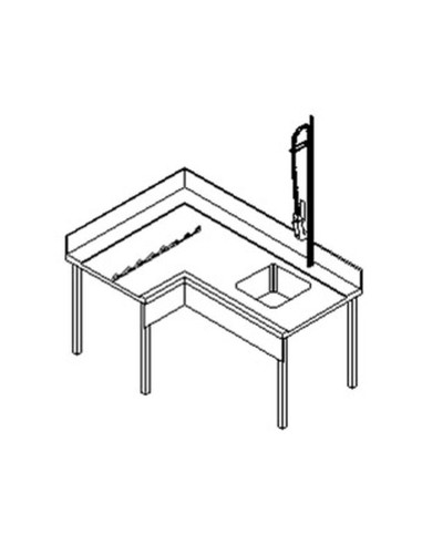 -Mesa en ángulo preparada para conectar el cargador de cestas al lavavajillas.