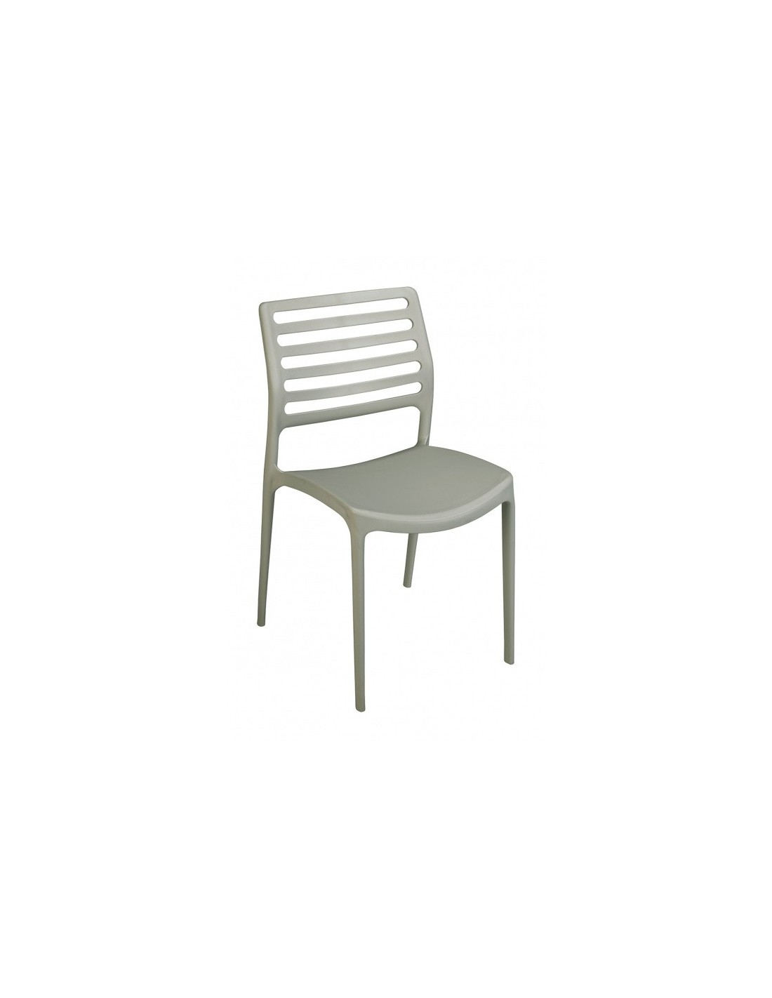- Armazón, asiento y respaldo: Monobloc. 100% Polipropileno inyectado a gas