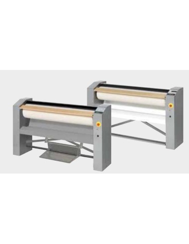 - Introducción y recepción de prendas frontal. - Mueble exterior en inoxidable y skin plate. - Muletón fabricado de poliéster (opcional: NOMEX). - Accionamiento mediante pedal. - Carga y descarga desde el frontal. - Protector de seguridad para las manos. - Microprocesador electrónico para la regulación de la temperatura. - Calentamiento eléctrico. - Termostato de seguridad. - Sistema de calentamiento eléctrico. - Cubeta de aluminio anodizado