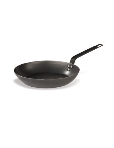 Sartén de gama profesional, fabricada en acero con excelentes propiedades térmicas y antiadherentes naturales. Válida para todo fuego y para hornos. De fácil limpieza con un trapo humedecido con aceite
