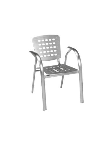- Asiento y respaldo: Plancha de aluminio perforada y anodizada.