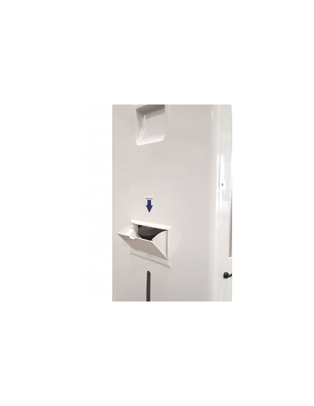 Con caja dispensadora que contiene sierra. Identificación de caja: Precinto amarillo.